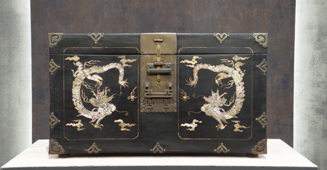 이어 등장하는 민속품은 화려한 빛깔의 나전함입니다.